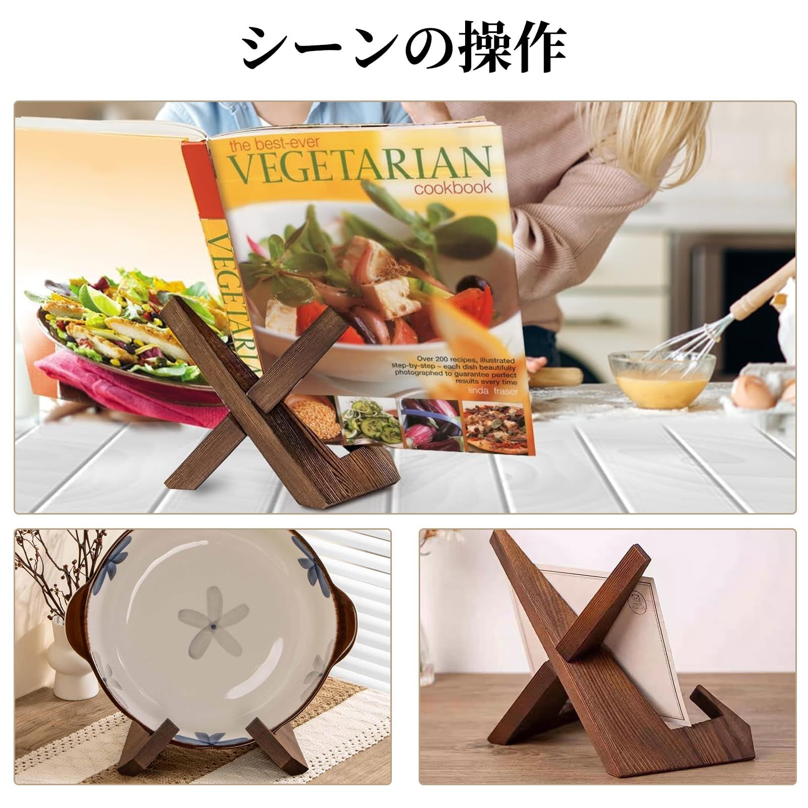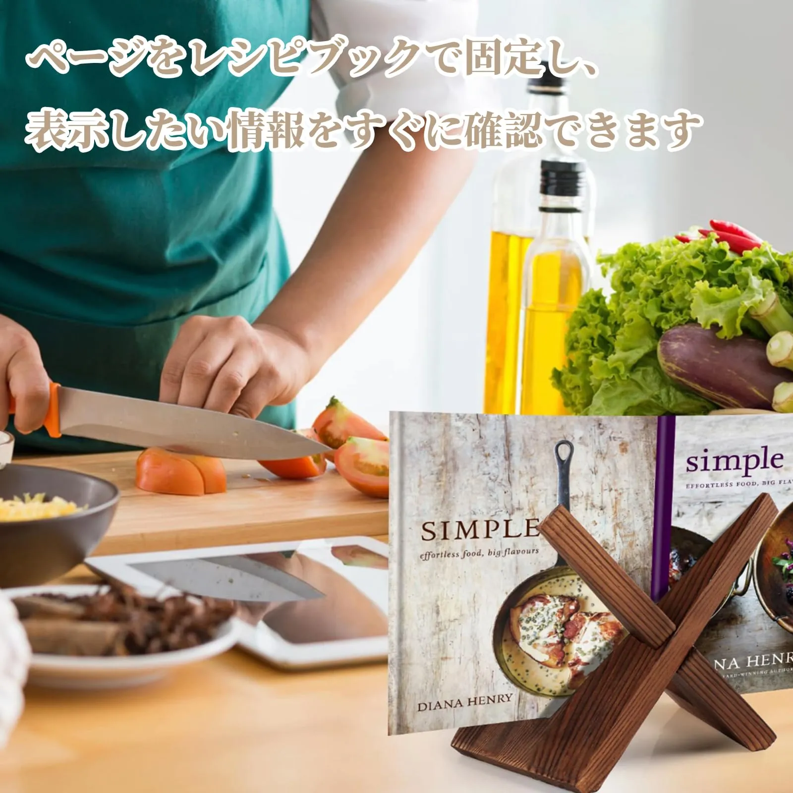 【ナチュラルで丈夫な木製素材】 高品質な天然木材を使用した木製のレシピスタンドです。すべすべとした手触りと十字のデザインが温かみを添え、どんなキッチンインテリアにも自然に馴染みます。しっかりと重量があるため、重いハードカバーの本も安定して支え、倒れる心配を軽減します。
