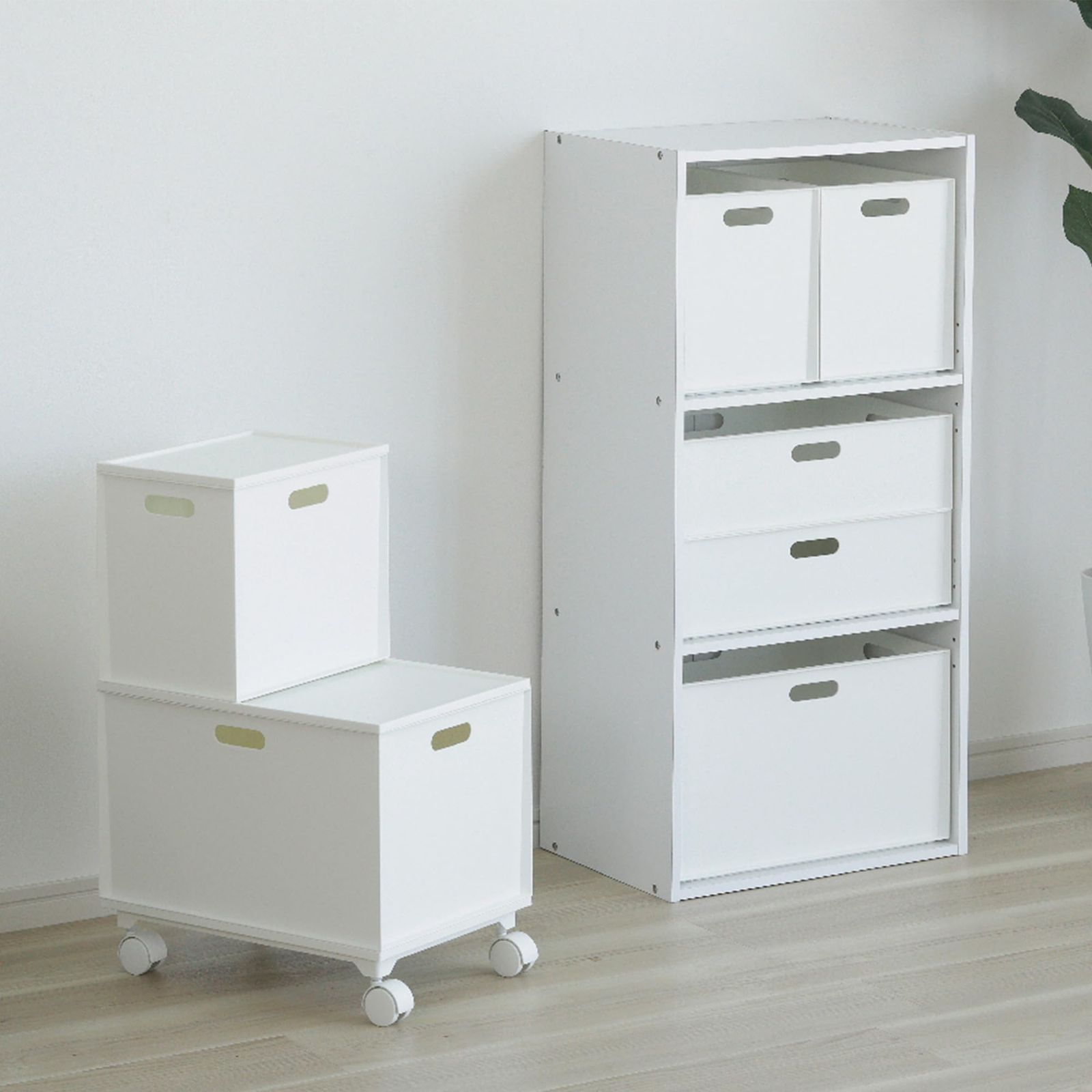 シリーズで組み合わせて他サイズともスタッキングできるため、スッキリ収納。トレーを使用すればフタ付き収納が可能です。カラーボックスのインナーとしても使用できます。『レギュラートレー』は専用キャスター(別売)を取り付ければ、キャスター付きトレーとして使用可能です。