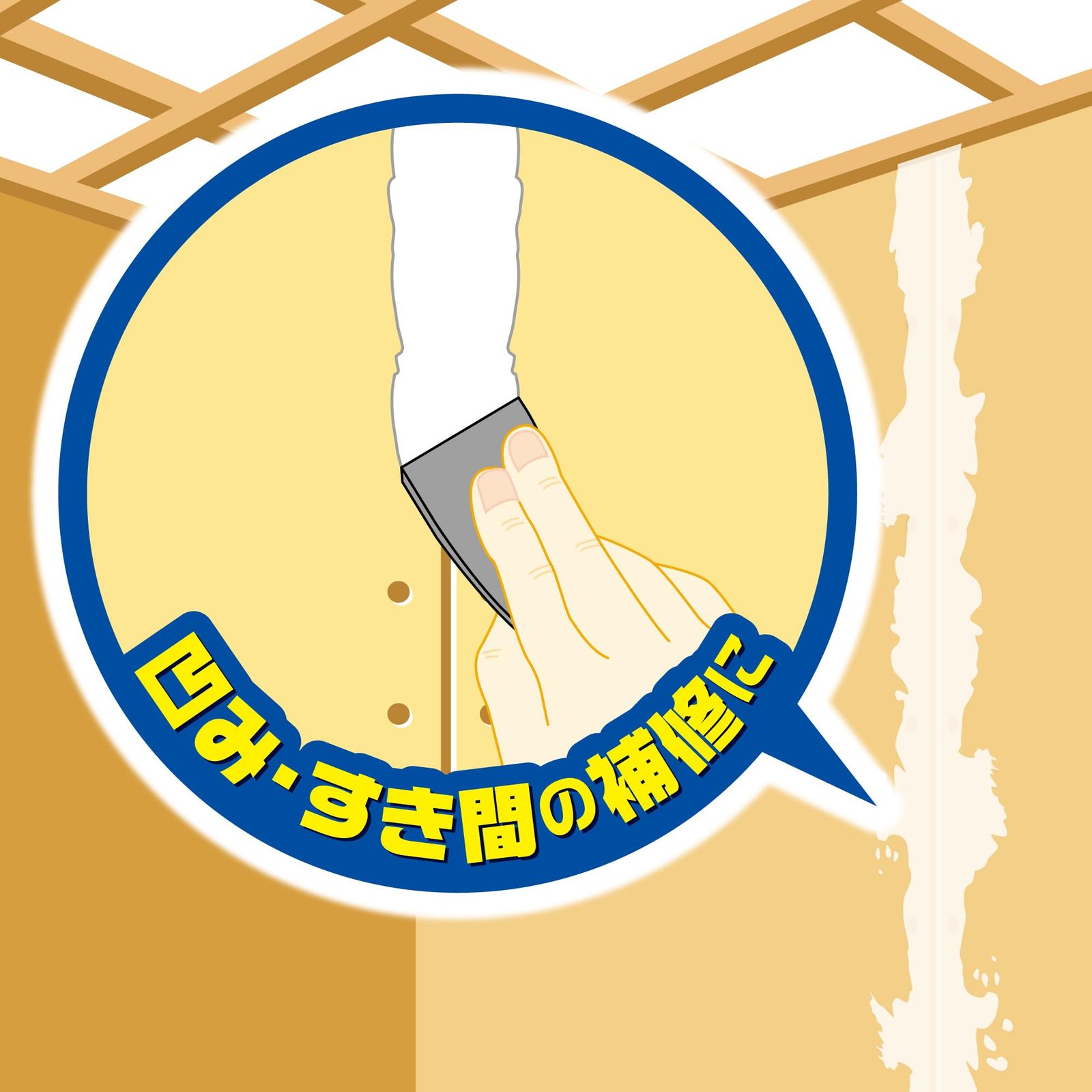 ●屋内部下地(石膏ボード、コンクリート、木部、プラスター等)のひび割れの補修に。