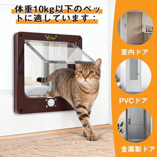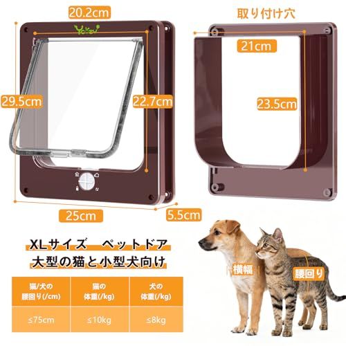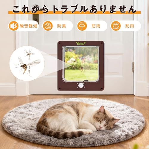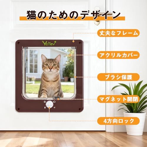 耐候性ブラシ:猫ドアのブラシが雨、風、雪の侵入を効果的に防ぎます。寒さを防ぎ、暖かさを保ちます。通過後も騒音を防止します!バルブの横に磁石がついており、猫が通るとドアが自動に元に戻ります。