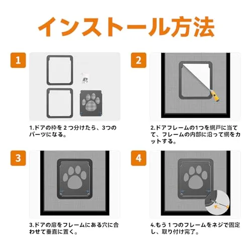 既存のドアへの取り付けが容易:このペットドアは、網戸、スライドドア、窓、または薄い外ドアに直接取り付けることができます。厚いアルミニウムドア、壁、または類似の表面に取り付けられた領域には、安全で安定した取り付けを確保するために接着剤(接着剤)で埋め込む必要があります。