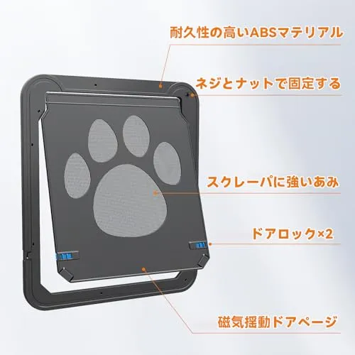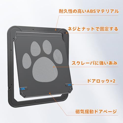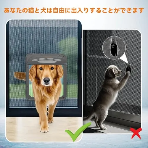 家に出入りしやすい:網戸 ペットドアは犬、猫、ペットが簡単に出入りできるように設計されている。磁気ドアカバーはペットが通過した後も閉じたままにすることができ、2重ロックにより、必要なときに安全にドアをロックすることができます。