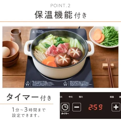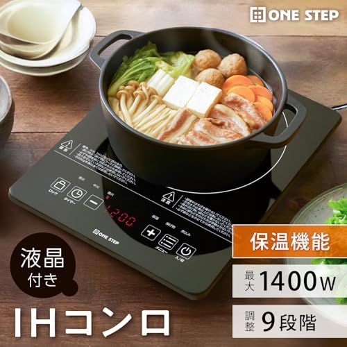 【パワフル火力。】 ONE STEP IHクッキングヒーター IHコンロ IH調理機 揚げ物 保温機能 新生活 鍋 おしゃれ コンパクト (1400W)t