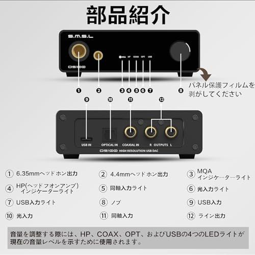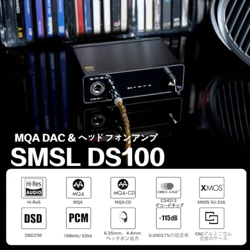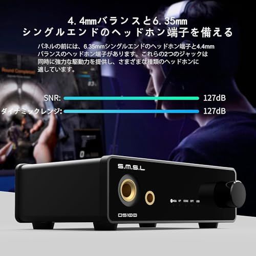 【Cirrus Logic CS43131 チップ搭載】SMSL DS100は、コンパクトで高性能なDACであり、ヘッドフォンアンプとしても機能します。優れた設計により、多用途で高品質な音質を提供します。DS100は、Cirrus Logic CS43131 オーディオデコーダーチップを搭載し、0.00017%(-115dB)という驚異的な低歪み性能を実現しています。これにより、音楽の細部まで鮮明に再現し、没入感のある音楽体験をお届けします。