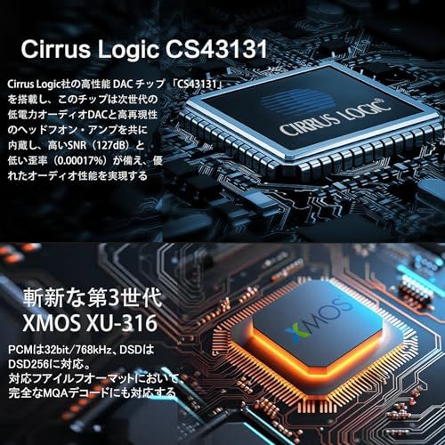【卓越したオーディオパフォーマンス】DS100のUSB-C入力は高性能なXMOS XU316インターフェースと組み合わせて使用され、受信したオーディオ信号を効率的に処理します。CS43131 DACと組み合わせることで、PCM 32bit 768kHzおよびDSD512までのオーディオ信号をサポートし、クリスタルクリアな音声再生と他に類を見ない没入感のあるリスニング体験を提供します。