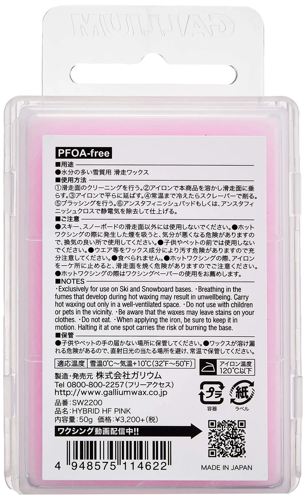 雪温0℃の水が浮いた状態の雪の時のフッ素高含有滑走ワックスです。汚れをはじく性能が強いため、滑走面が汚れず滑走性が長続きします。