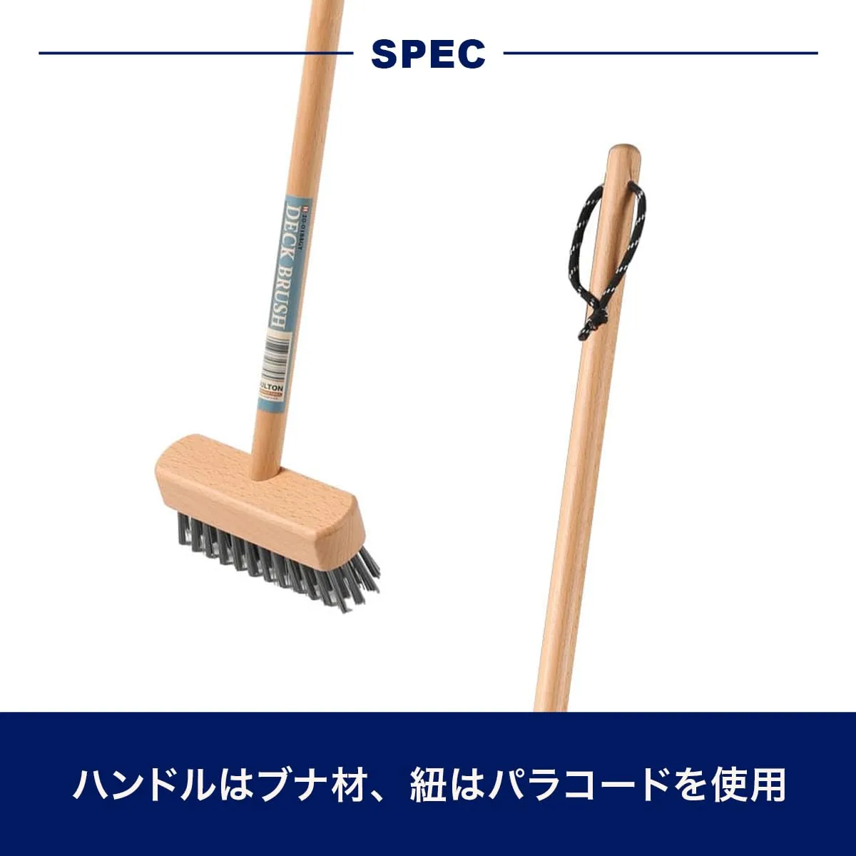 BEECH WOOD(ブナ材)を使用した、デッキブラシです。木の表面はラッカー仕上げで耐水性もある為、水場での使用も可能です。ハンギング用の紐はパラコードを使い細部にまで拘りました。イエロー、グレー、オリーブの3色展開です。※ご購入前は注意事項をご確認下さい。商品に関する注意事項清掃以外の用途に使用しないで下さい。温度の高いところ。直射日光の当たる場所に保管しないで下さい。 火気の近くで使用しないで下さい。変形や破損の原因となります。経年劣化や破損等が見られた場合は直ちに使用をお止め下さい。ペットや小さなお子様の手の届かない場所で保管して下さい。天然木を使用しているため、色調や質感等に個体差があります。無理な角度で強い力を加えると破損する恐れがあります。