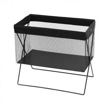 本体には中に入れたものが一目で分かり置き忘れ防止にもなるメッシュ素材と丈夫なナイロン生地を組み合わせた、シンプルな見た目と機能性も掛け合わせた手荷物入れです。背が低めで間口が大きく開いているので、イスに座ったままでも荷物が出し入れしやすく、イスの脇に置いても邪魔にならないちょうどいいサイズ感です。