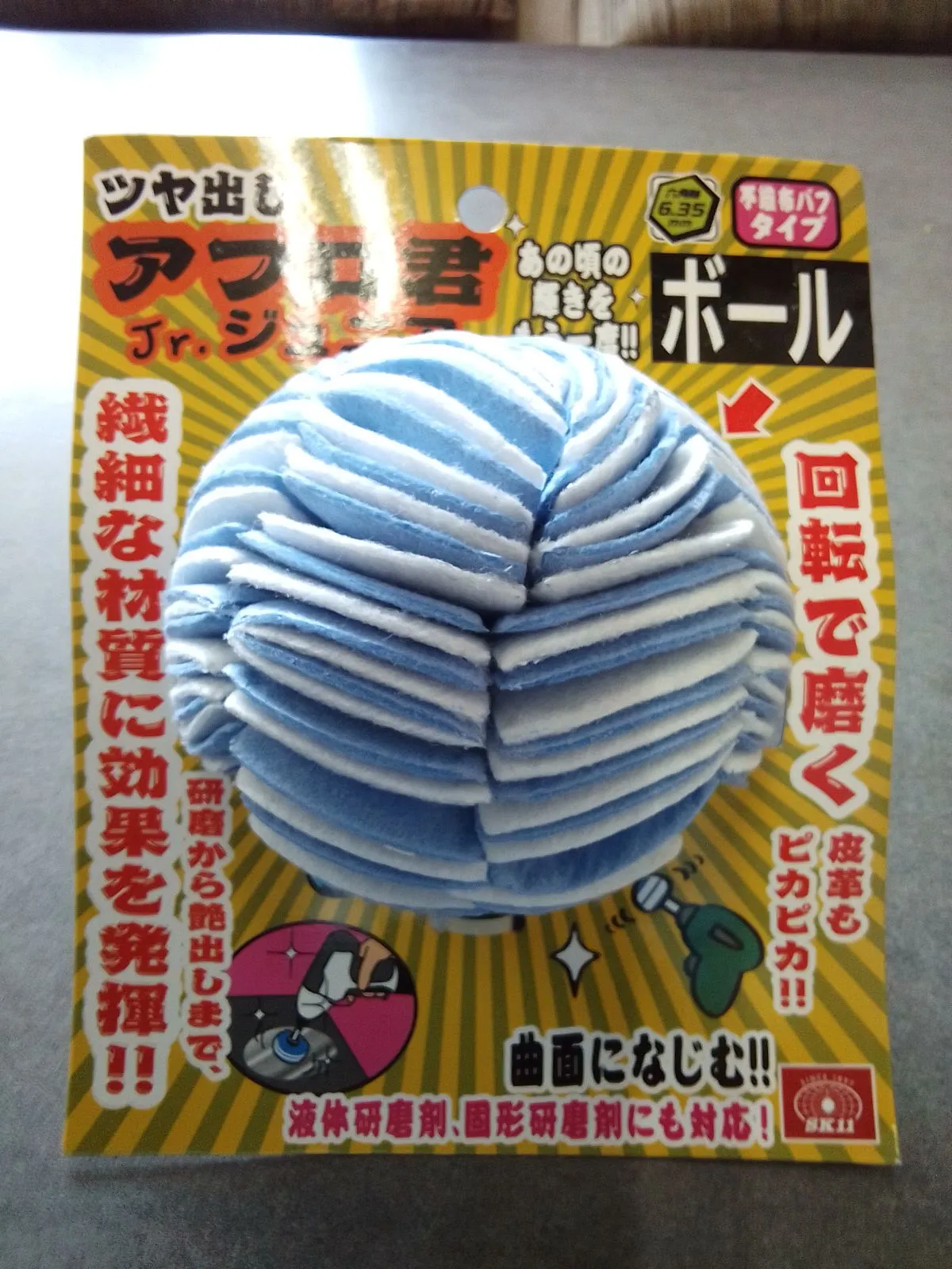 幅100 ×高さ110 ×奥行き100mm 重量79g 金属・塗装面・メッキ面の磨き艶出しや木材・皮革の艶出し、クリーニング。 多重不織布なので優しくしっかり磨きが出来ます。 ソフトなあたりで深いキズが入りません。 アール面が曲面に適度になじみます。 密度が濃いのでしっかり磨けます。 ワックスや研磨剤が馴染みやすい不織布バフです。 サイズ:100mm。 ボール型。 不織布バフタイプ。 軸:6.35mm六角軸。 最高使用回転数:3000min-1。