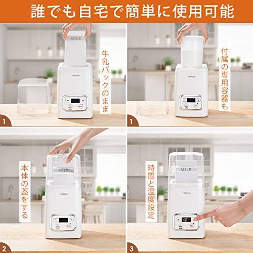 【付属品も充実】1L専用容器、計量カップ、スプーン、牛乳パック用フタ、レシピブックなど通常販売価格2000円相当のアイテムがあらかじめ付属しております。だからご購入後すぐに調理ができ、あとからあれこれ揃える必要はありません。