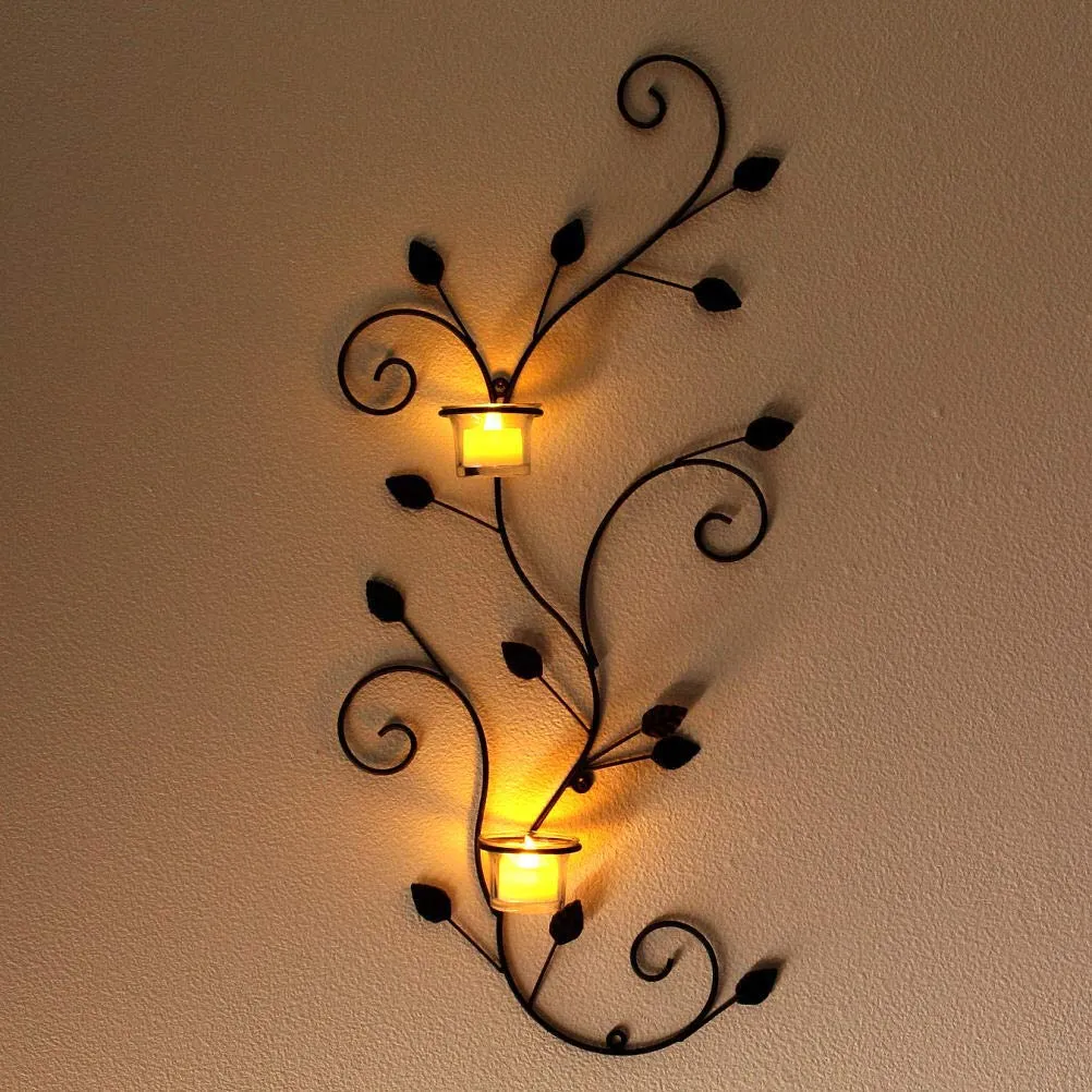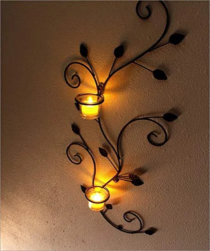 LEDキャンドル付き / 取り付け穴は3か所です(取り付け用ネジは付属していません) / アイアンやガラスの欠け、小傷、擦り傷はご容赦ください