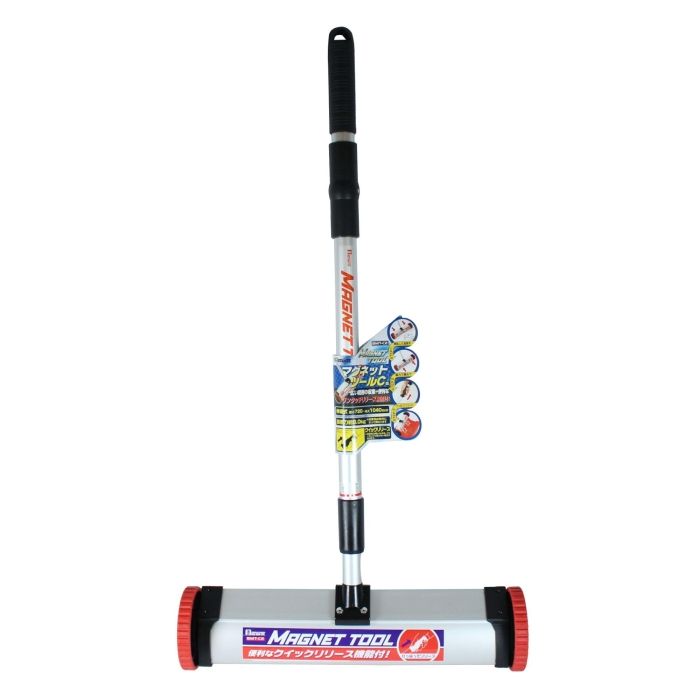 【仕様】・サイズ(mm):720×380×95・質量(g):1480・ハンドル:伸縮タイプ(720-1040mm)・材質:本体部・シャフト・リリースレバー部 アルミニウム ハンドル PVC 内部マグネット 永久磁石 車輪部 PP+TPR 内部バネ等 鉄・吸着力(kg):約9.0・全長(mm):最小720-最大1040・吸着範囲(mm):310×50・タイプ:C型・角度可変式ハンドル
