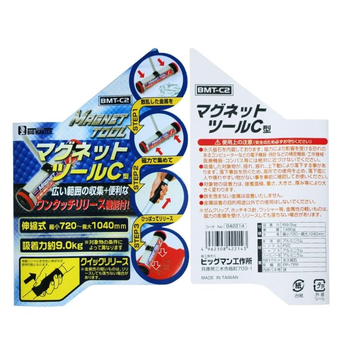【注意事項】永久磁石を内蔵しております。磁力により影響を受ける恐れのあるコンピューターなどの電子機器・時計等の精密機器・工作機械・医療機器・コンパス等には絶対に近づけないで下さい。落下事故を防ぐため、高所での使用はお控え下さい。.