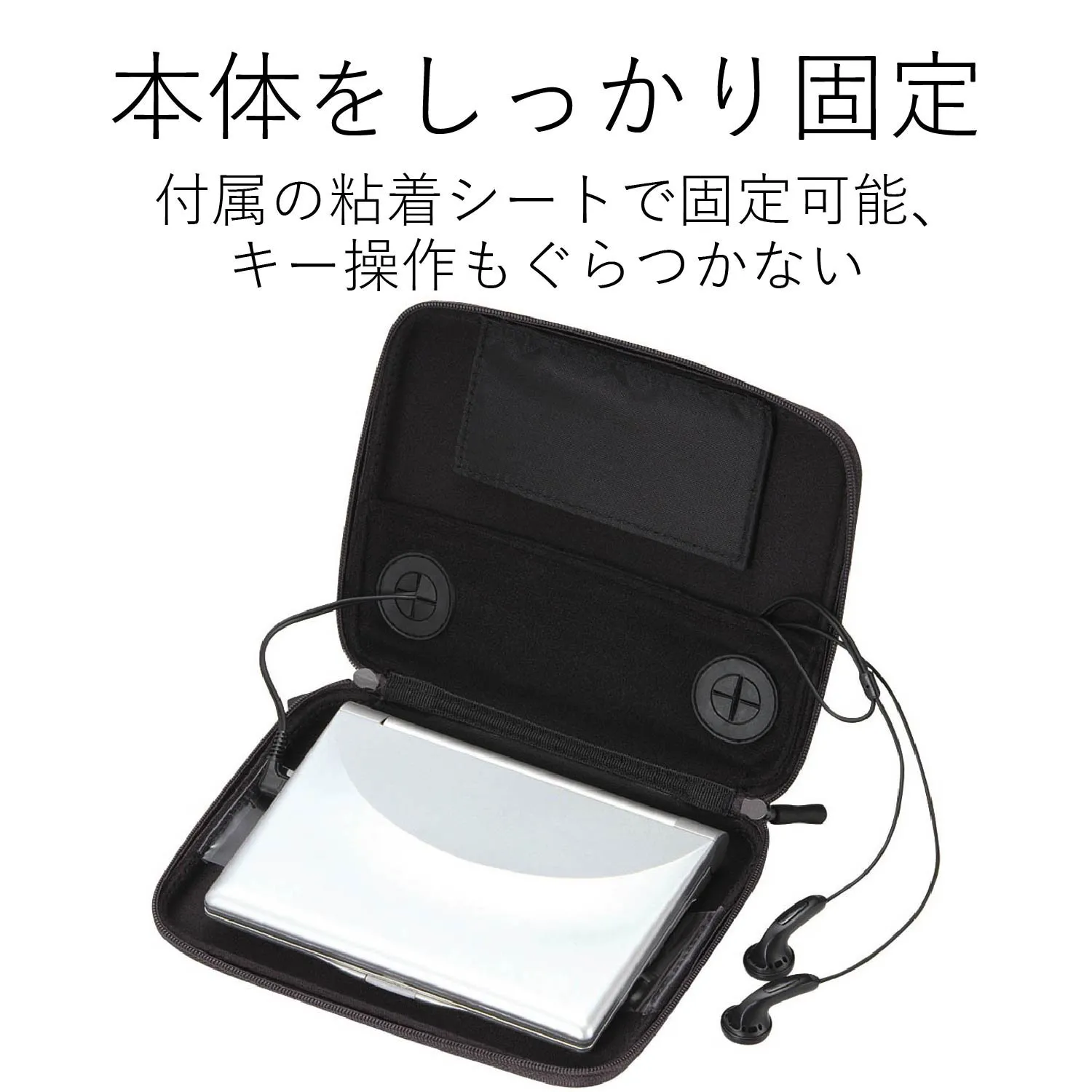 ●付属の粘着シートで電子辞書を固定できます