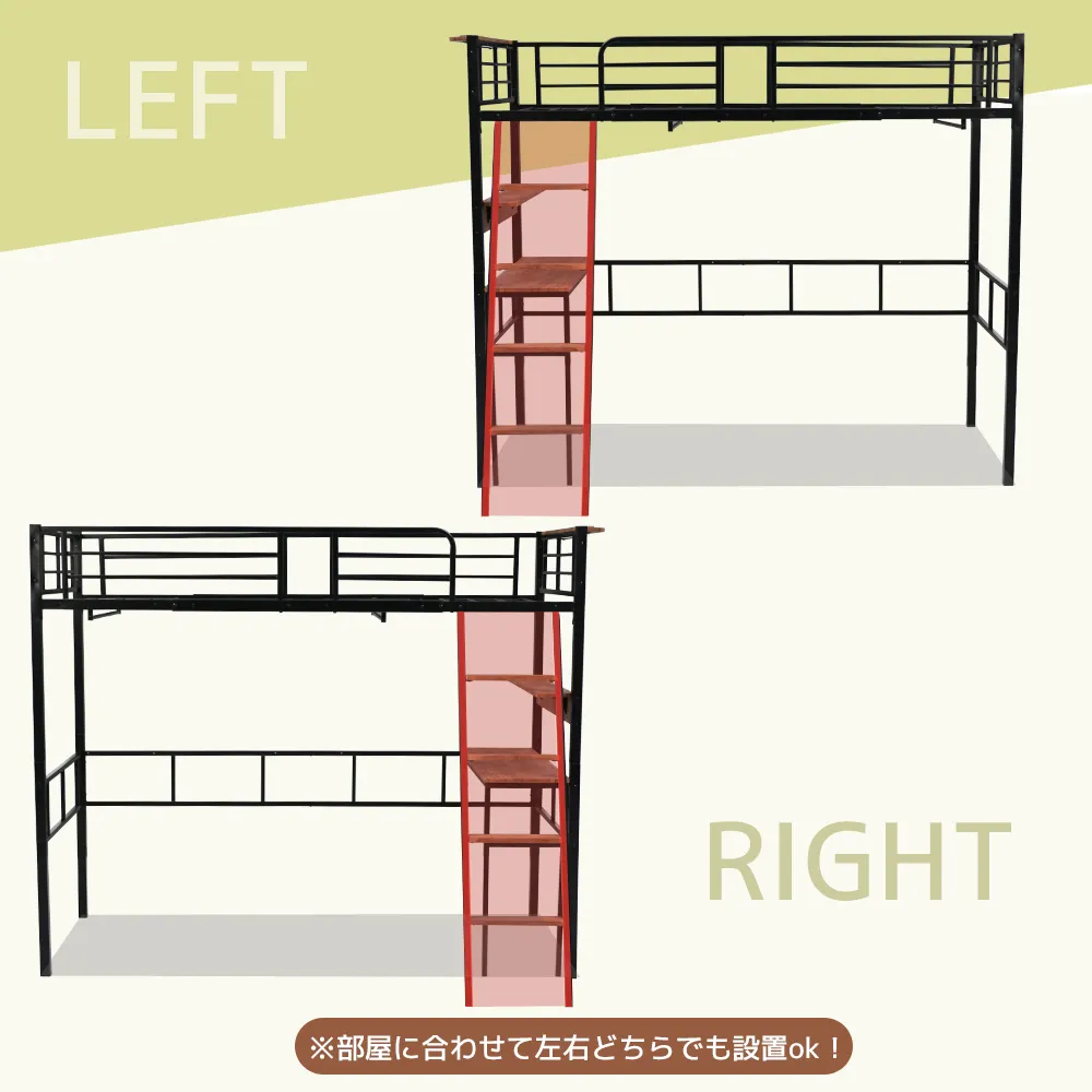 【木板はしご】毎日上り下がりする際の快適さも、しっかりとこだわりました。 足の裏に負担がかかりにくく、痛くなりにくいフラットな形に。※部屋に合わせて左右どちらでも設置ok!