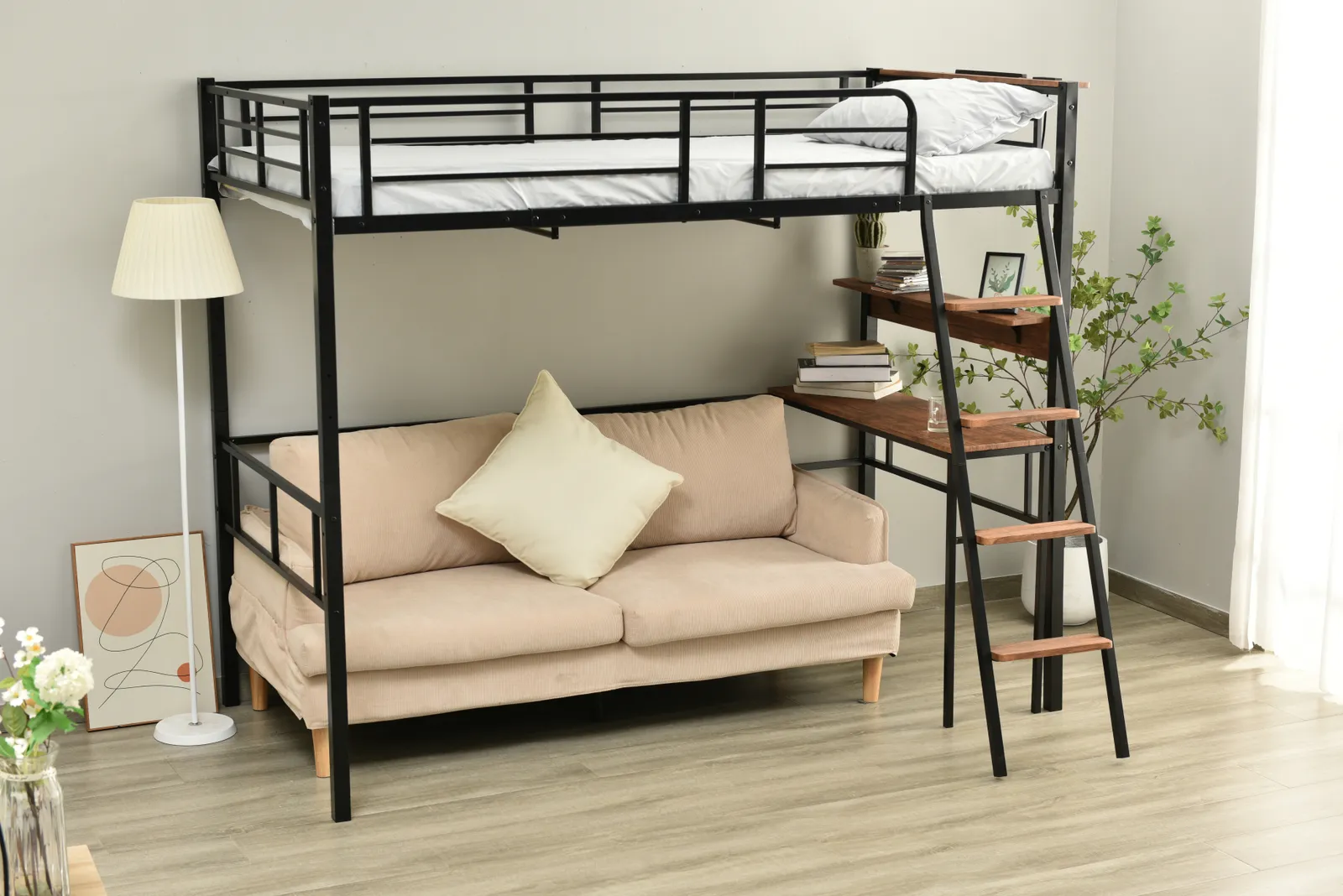 【移動できるデスク付き】スペース節約で、限りあるスペースを有効的に利用できる!デスクは移動可能で、1人で使用することも、2人で一緒に使用することもできます