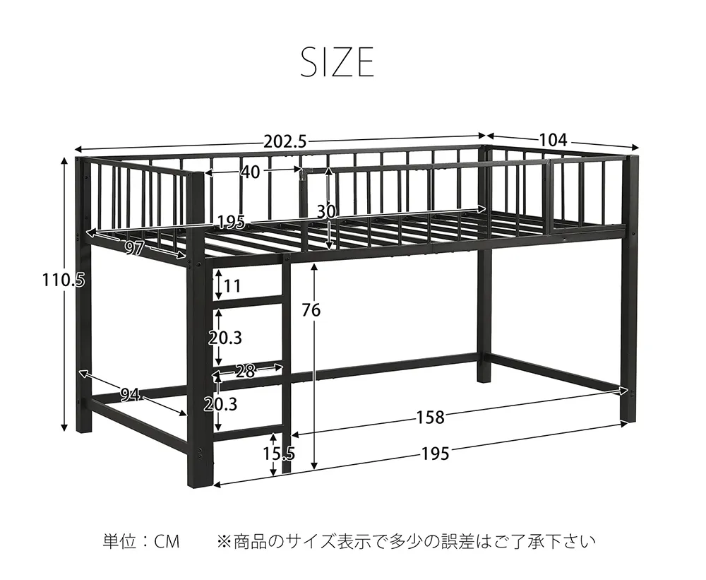 ※マットレスを載せていない床板の上には直接乗らないでください。破損してケガをする恐れがあります。 ※ベッドフレームのみ、マットレスは別売りです。(厚さ10cmのマットレスがおすすめです)