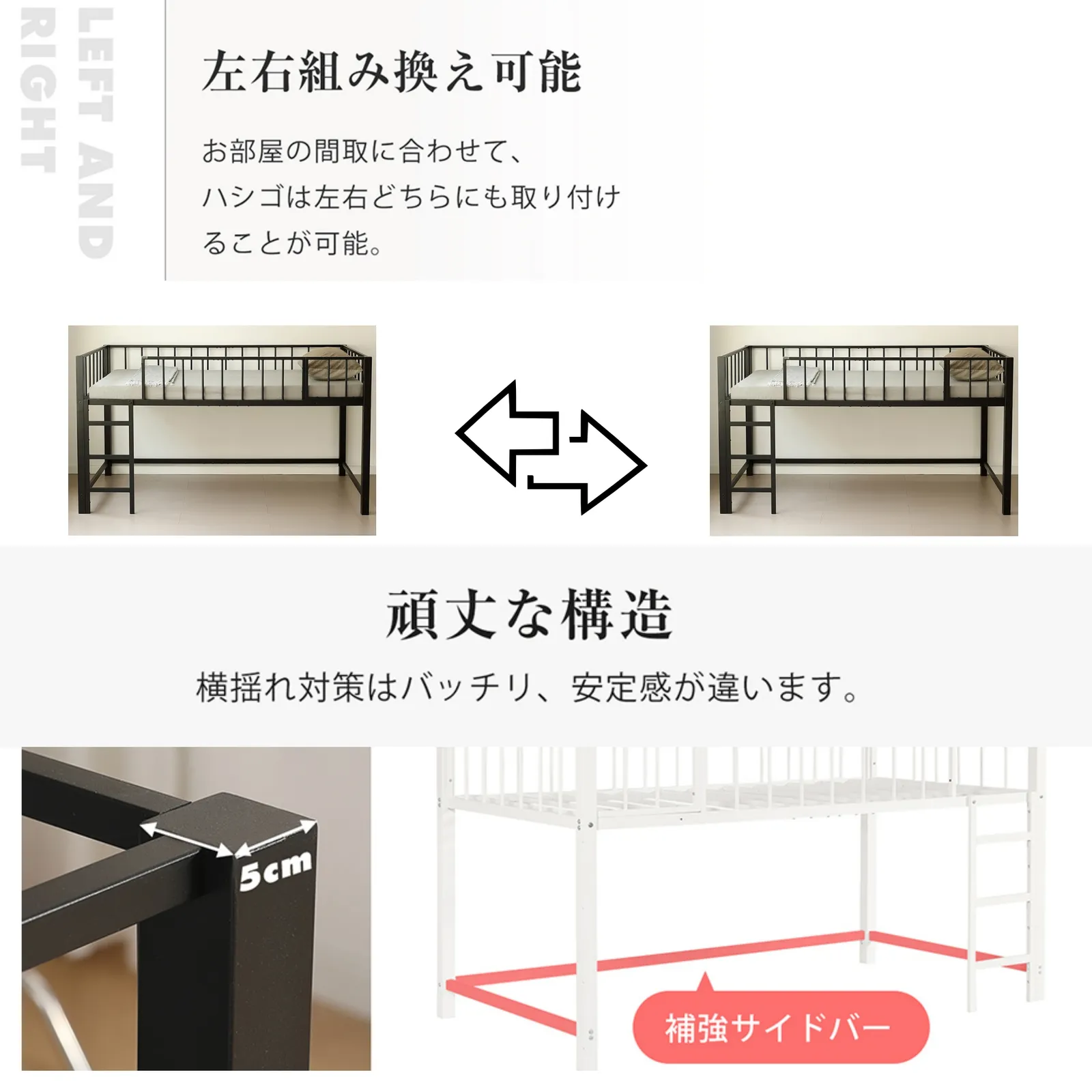【左右組み換え可能 】はしごは左右どちらにも取り付け、理想のレイアウトを実現できます。