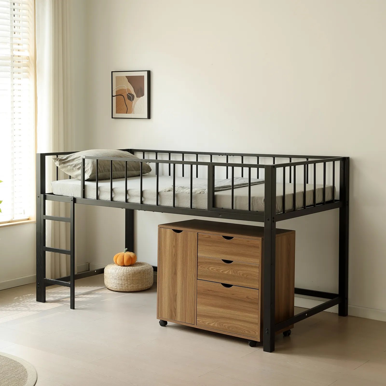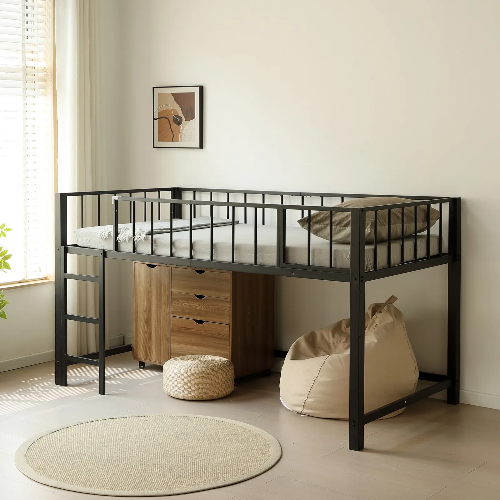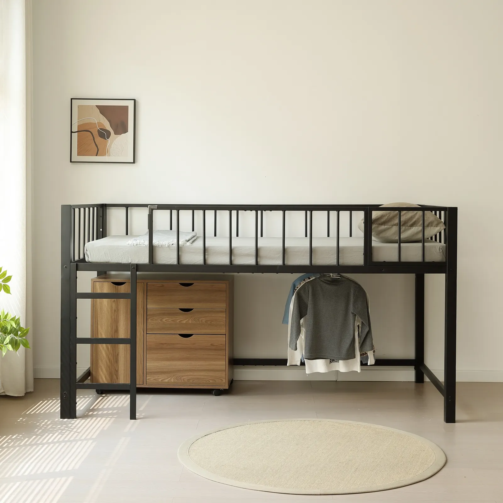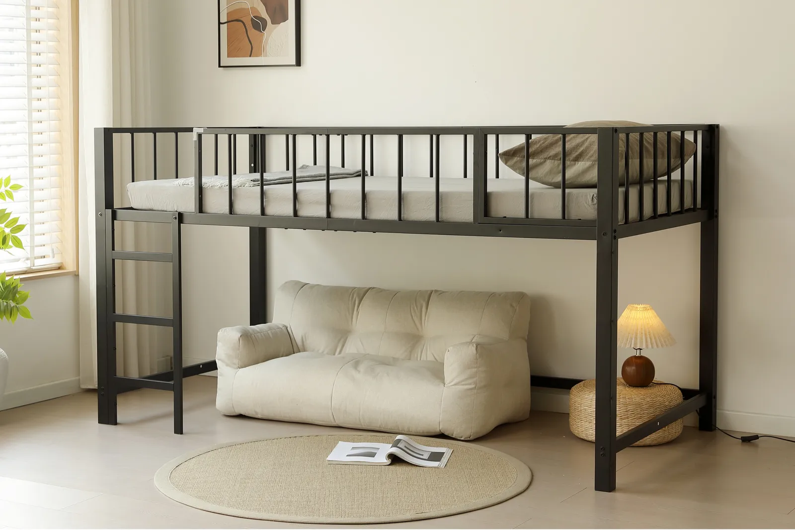 【110cm高さのロータイプ 】ちょうどいい高さで天井からの圧迫感がなく、毎日の昇り降りや、布団の上げ下ろしを楽にすることができます。