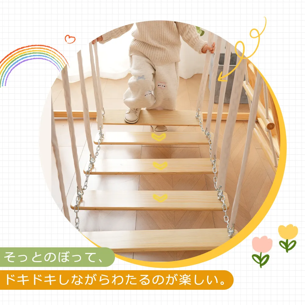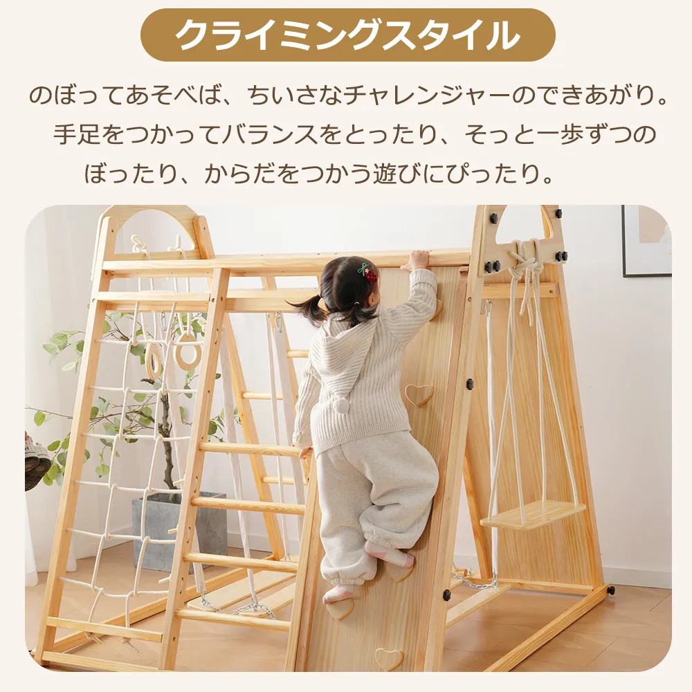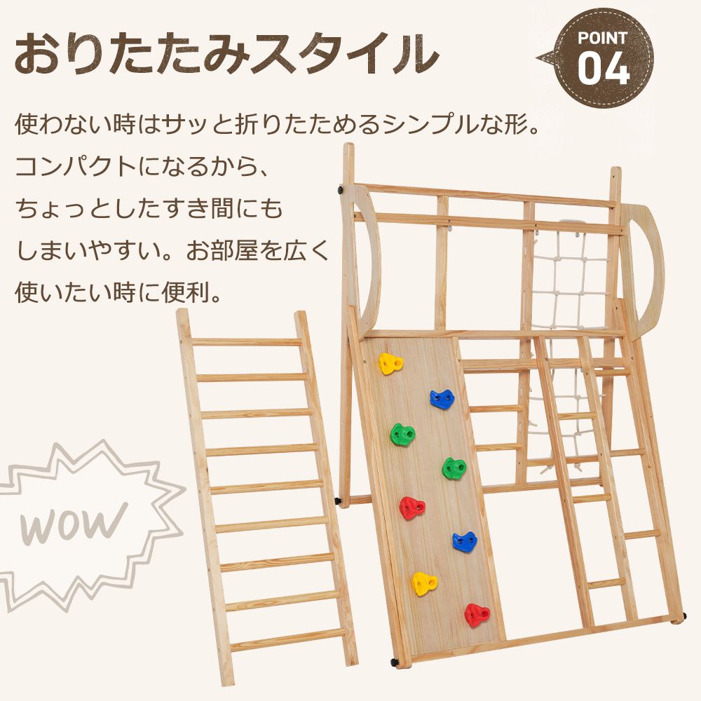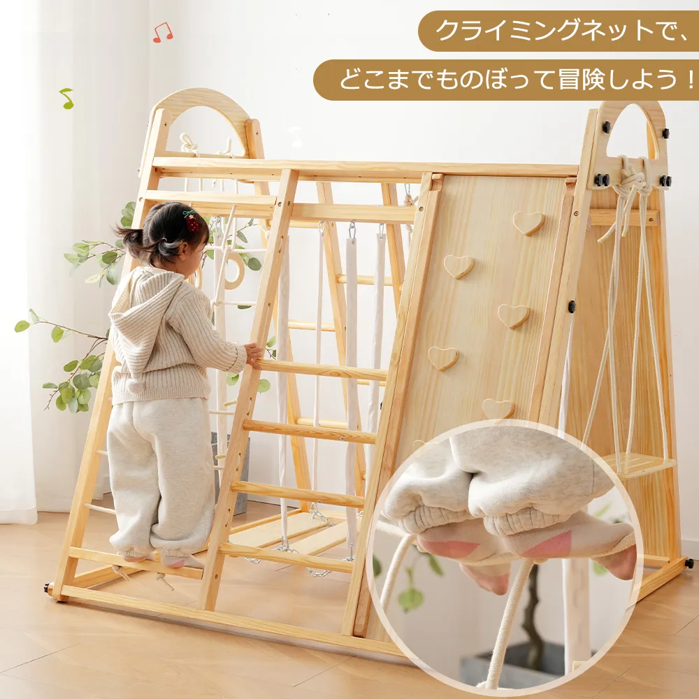【自分の力で登ったり下りたり室内でも身体を動かして楽しめる。】お子さまの自立心と運動能力を高めるために開発されました。ロープ梯子とジャングルジムを組み合わせたことで、子どもたちはさまざまな楽しみを味わえるのです。集中力を高め、四肢の協調性を向上させ、バランス感覚を鍛えます。くまの愛らしい形 折りたたむときのキーになって~鋭い角がなく、表面をツルツルに。三角形の形状で、穏やかな感じになります。