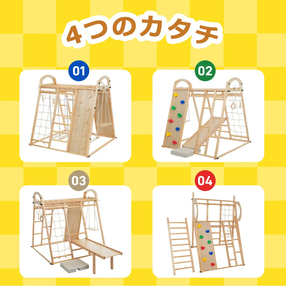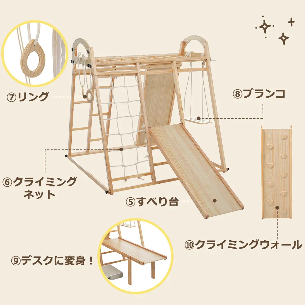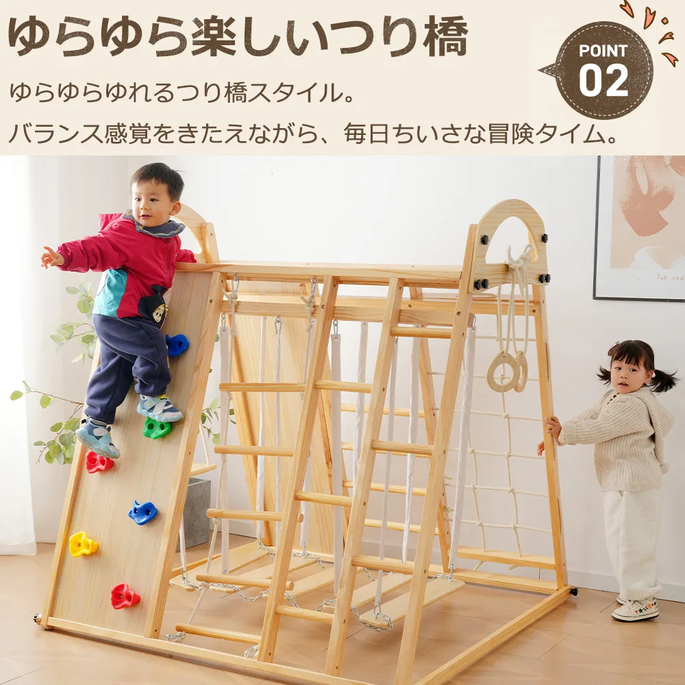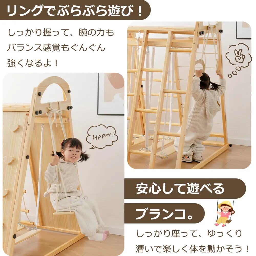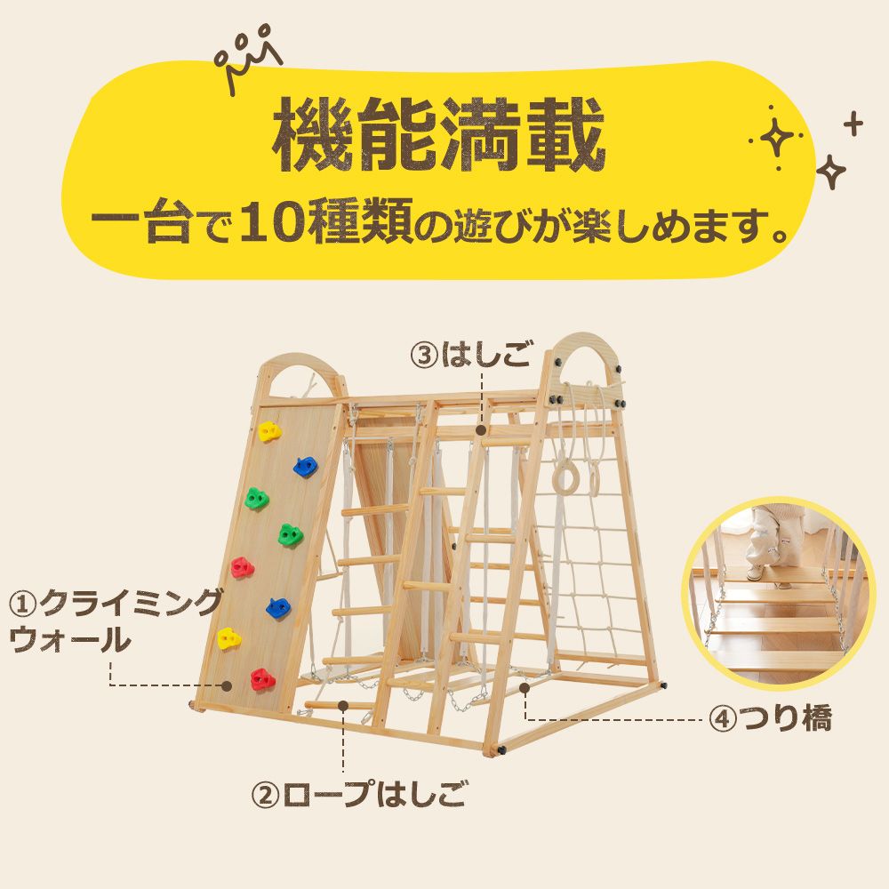 【自分の力で登ったり下りたり室内でも身体を動かして楽しめる。】お子さまの自立心と運動能力を高めるために開発されました。ロープ梯子とジャングルジムを組み合わせたことで、子どもたちはさまざまな楽しみを味わえるのです。集中力を高め、四肢の協調性を向上させ、バランス感覚を鍛えます。くまの愛らしい形 折りたたむときのキーになって~鋭い角がなく、表面をツルツルに。三角形の形状で、穏やかな感じになります。