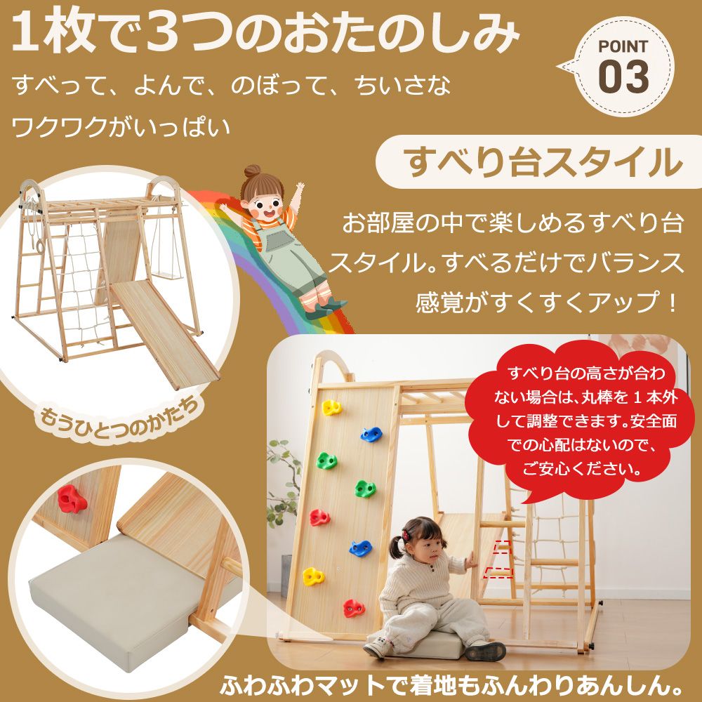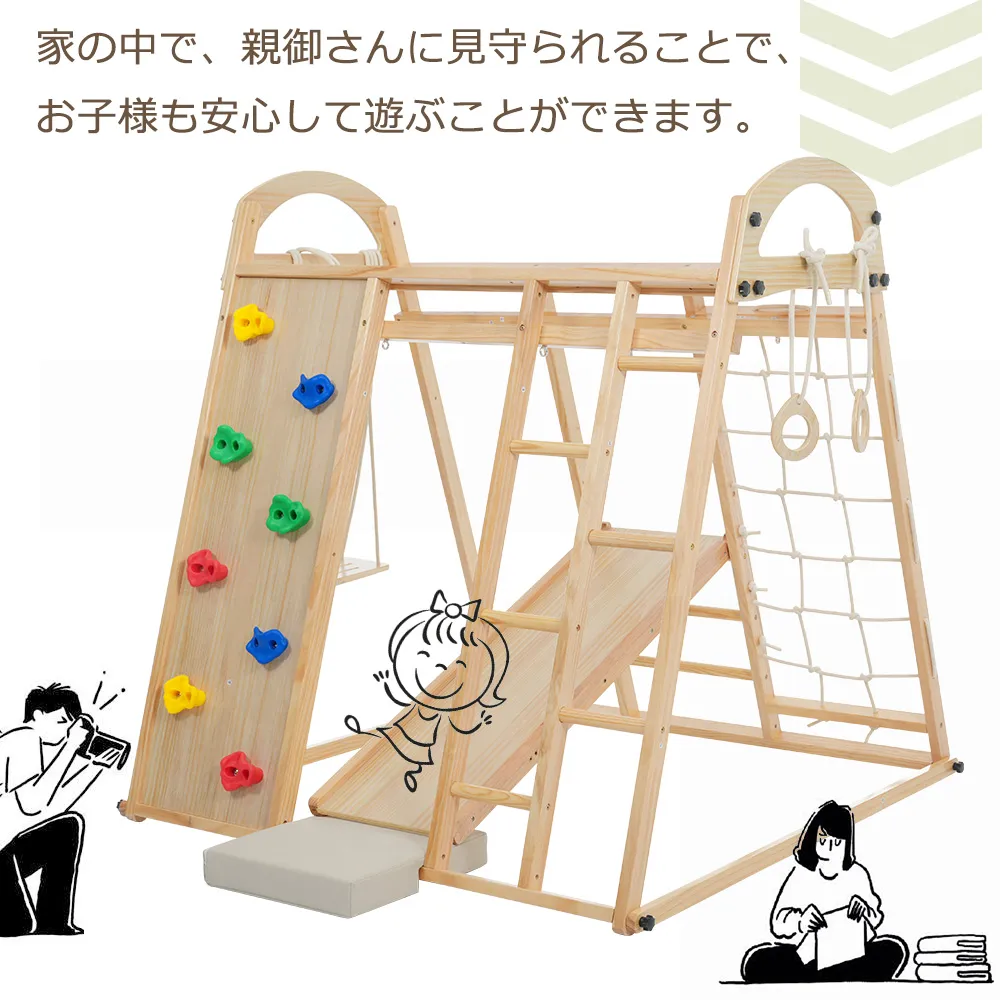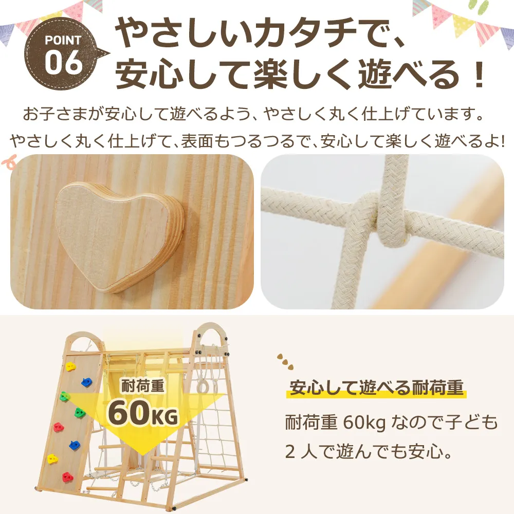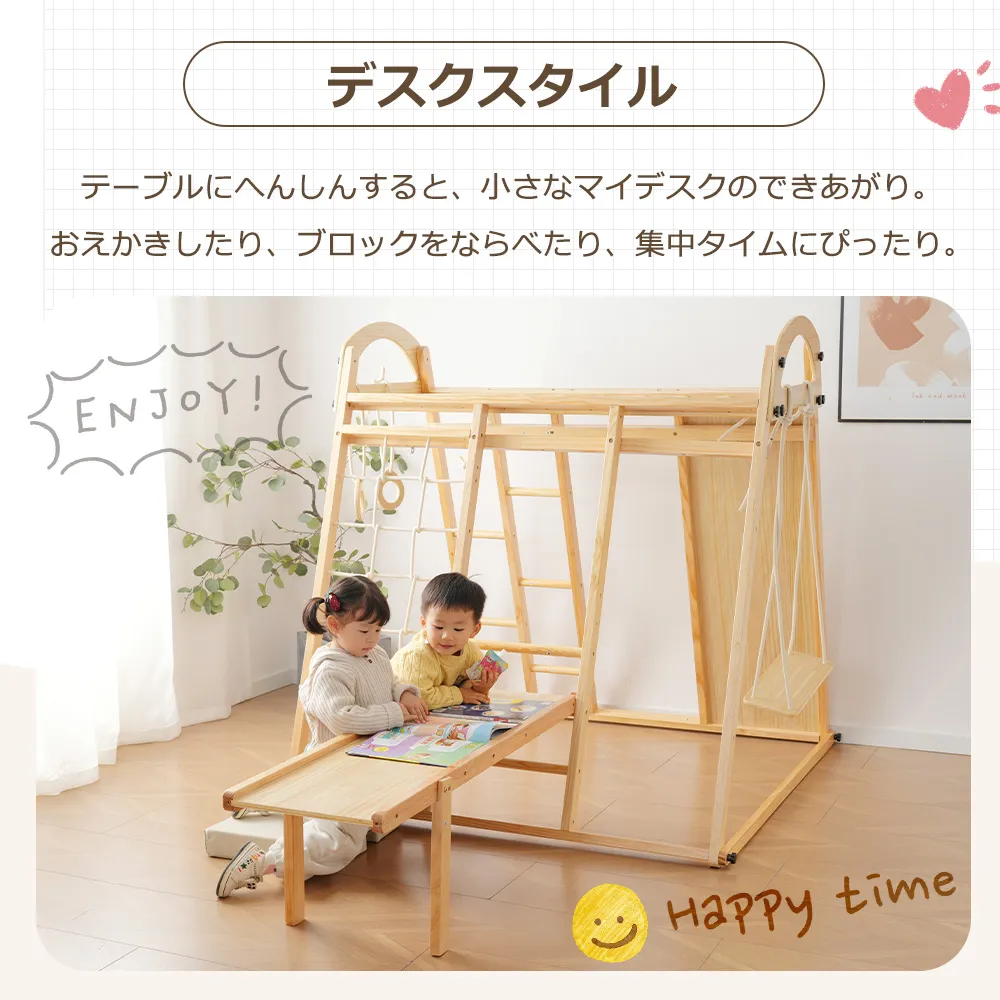 【自分の力で登ったり下りたり室内でも身体を動かして楽しめる。】お子さまの自立心と運動能力を高めるために開発されました。ロープ梯子とジャングルジムを組み合わせたことで、子どもたちはさまざまな楽しみを味わえるのです。集中力を高め、四肢の協調性を向上させ、バランス感覚を鍛えます。くまの愛らしい形 折りたたむときのキーになって~鋭い角がなく、表面をツルツルに。三角形の形状で、穏やかな感じになります。