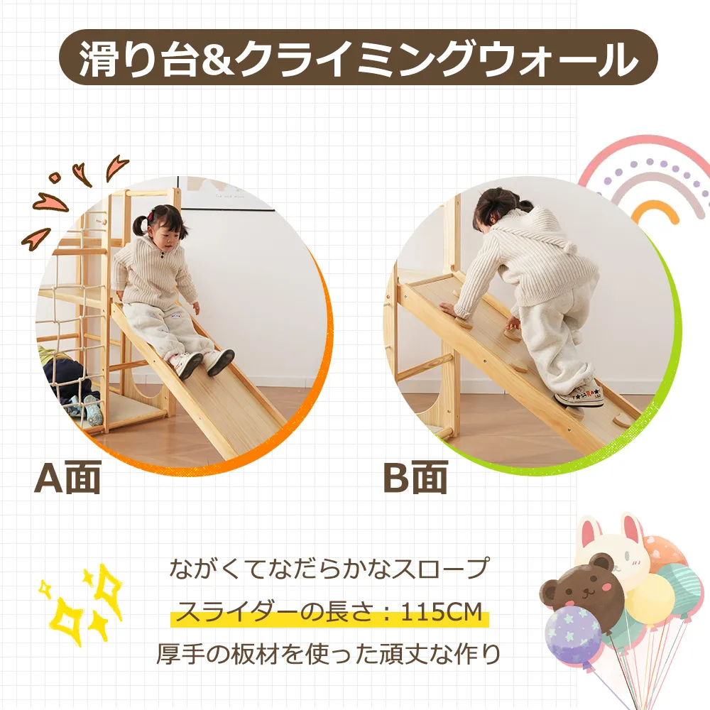 【 滑り台&クライミングウォール】ながくてなだらかなスロープ スライダーの長さ:115CM 1.6CM厚の板材を使った頑丈な作り高さちょうどういいの階段 ケガをしないように安心安全の角取り加工