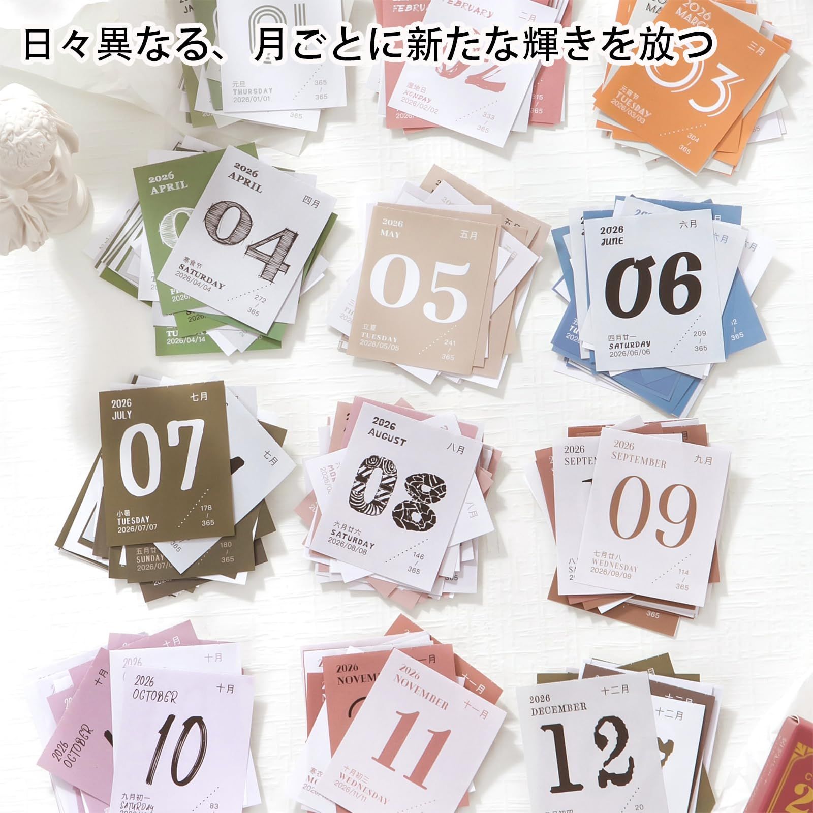 この2026年ミニカレンダーは365枚のページで構成され、1月から12月までを網羅。毎月異なるデザインで、視覚的に楽しめ、オフィスや自宅を彩ります。