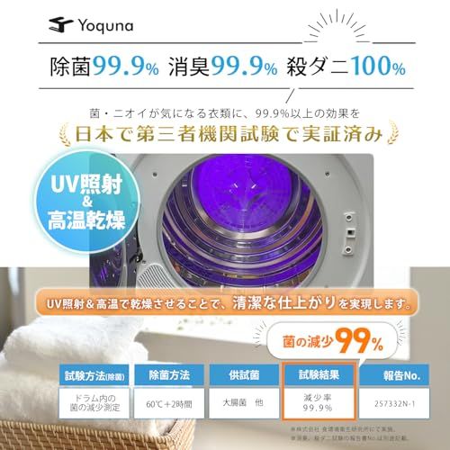 【SNS1000万再生突破】 Yoquna (ヨクナ) ムーンドライ 衣類乾燥機 容量3kg ホワイト UV照射衣類ケア 高温60℃ 乾燥検知自動停止 GDZ40-518E (シルバー 下部)t