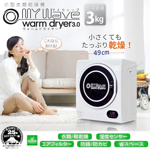 【 マイウェーブ ウォームドライヤー3.0 】 ホワイト 日本語マニュアル付き 3kg 靴 小物乾燥棚付 タッチパネル 工事不要 省電力 省スペース 靴 衣類 小型乾燥機 靴乾燥機 衣類乾燥機 くつ乾燥 小型 コンパクト 新生活 一人暮らしt