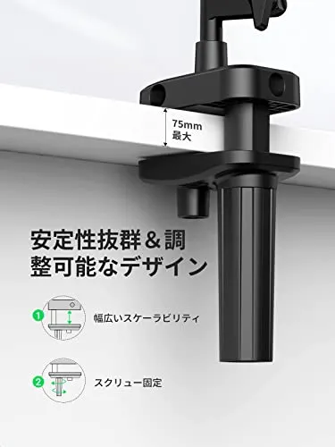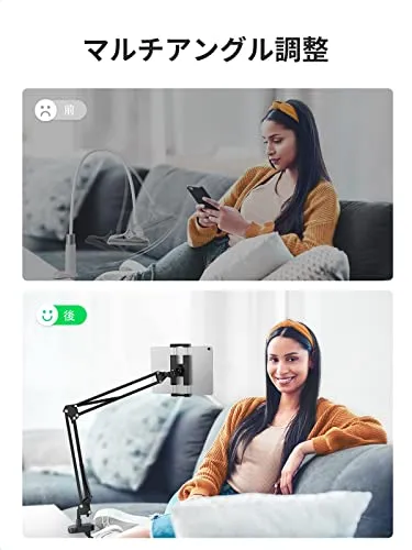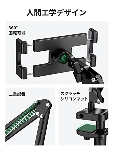UGREEN タブレット アーム スタンド 寝ながら 4.0-12.9インチ対応 炭素鋼素材 ipad アーム ベッド用 360回転可能 スマホ スタンド iPhone/Android/iPad/Kindle/Switch/Surfaceなどのデバイス対応 日本語取扱説明書付き 国内発送