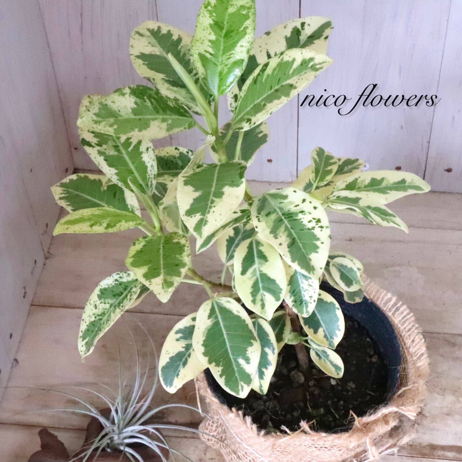 斑入りフランスゴムの木『フィカス ルビキノーサ』です。