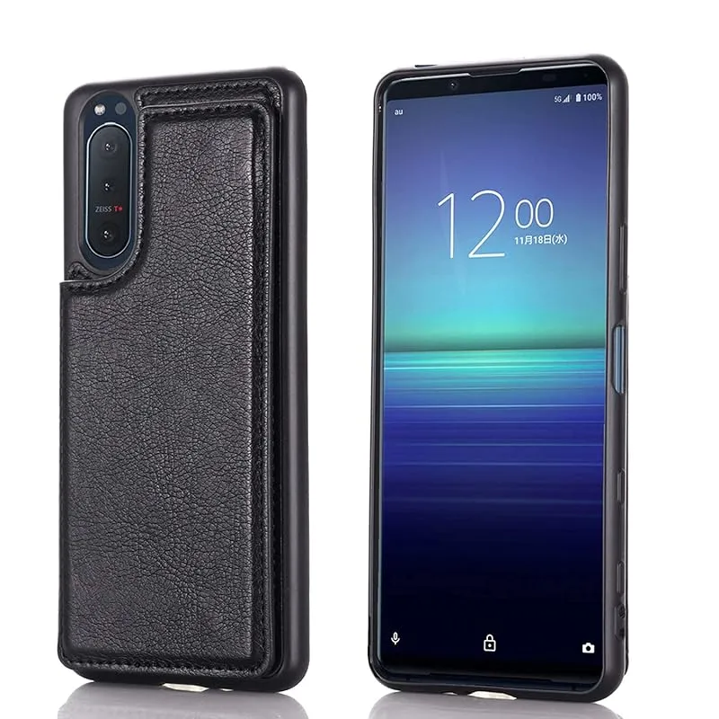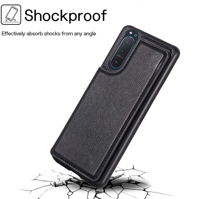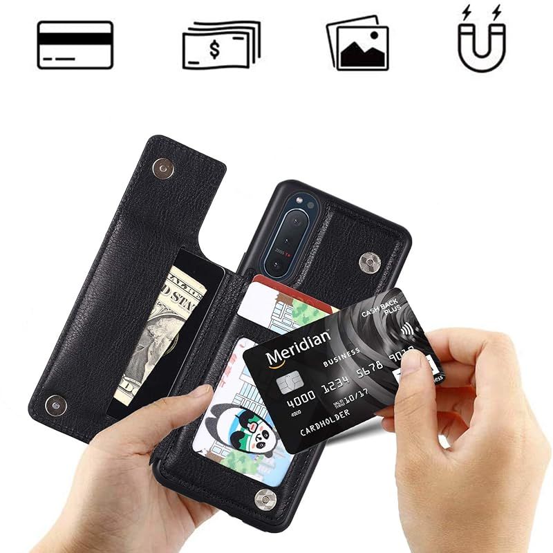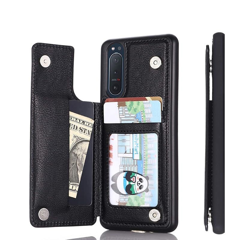 【Anrek】互換性 Sony Xperia 5 II 用 ケース 手帳型(ブラック)SO-52A docomo SoftBank / SOG02 au 高級 PU革 磁石吸着 ポケッ 片手操作背面 IC カード 収納 横置き機能 ケース ?ソニーs