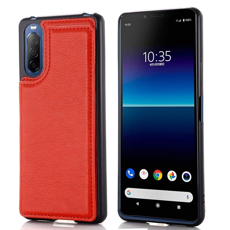 【Anrek】互換性 SONY Xperia 10 II/docomo SO-41A/au SOV43 用 ケース 手帳型(レッド)エクスペリア10ii 高級 PU革 磁石吸着 ポケッ 片手操作背面 IC カード 収納 横置き機能 ケース ソニーxp