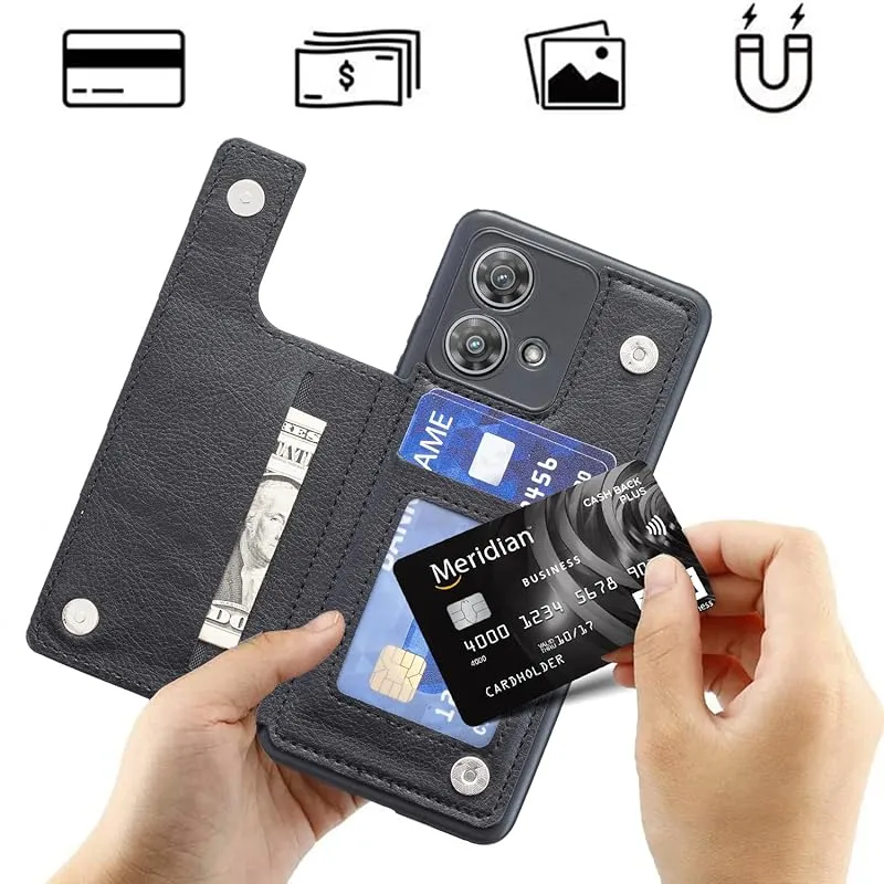 【Anrek】互換性 Motorola Moto edge 40 Neo 用 ケース 手帳型(ブラック)高級 PU革 磁石吸着 ポケッ 片手操作背面 IC カード 収納 横置き機能 ケース モトローラ モトedge40neo 黒