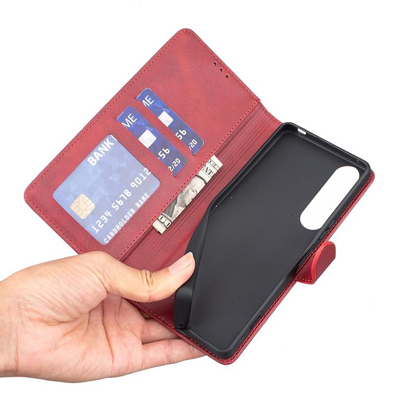【新品】 case For Sony Xperia 1 IV SOG06 SO-51C ケース エクスぺリア 1 IV カバー手帳型 猫 肉球の跡 マグネット開閉式 カードポケット付き 横開きスタンド 財布型 全面保護 (M2-赤, に適用するXperia 1