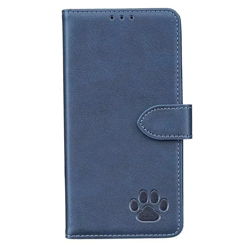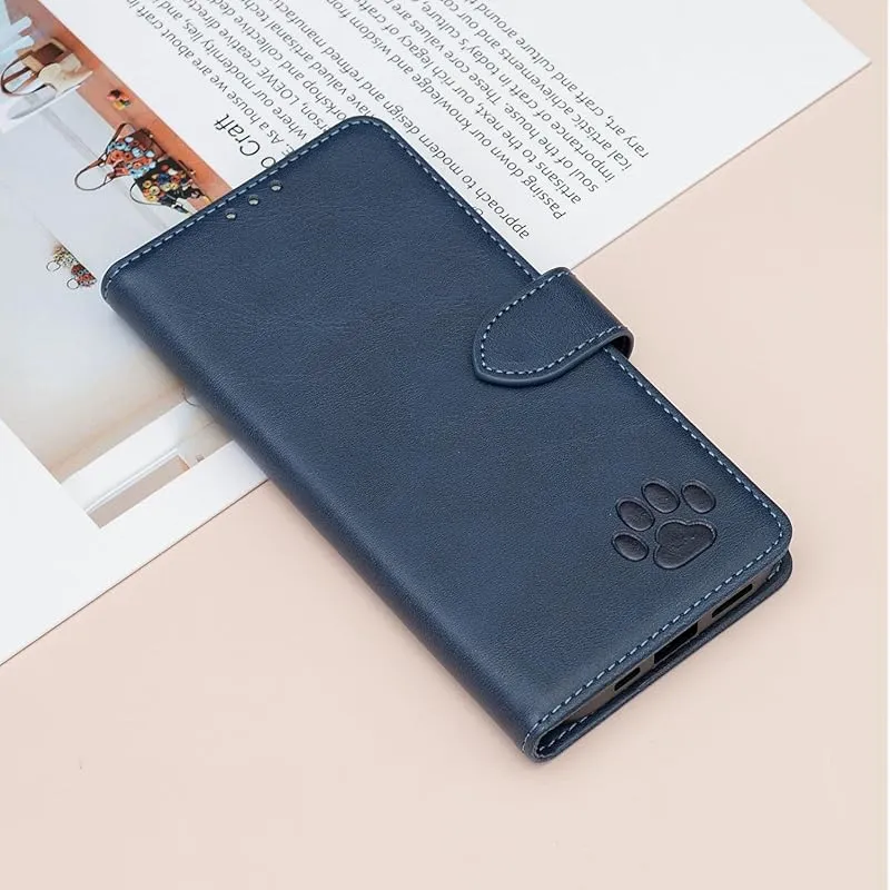 【新品】 case for Arrows We2 ケース アローズ F-52E カバー手帳型 猫 肉球の跡 マグネット開閉式 カードポケット付き 横開きスタンド 財布型 全面保護 (M3-青, に適用するArrows We2 F-52E)