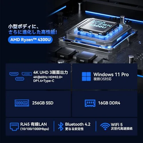 【2026新登場・3500Uより速い】 最大3.7GHz 16GB256GB Windows11 Pro ミニパソコン minipc 4K3画面出力 フル機能Type-C USB3.2x6 HDMI2.0DP1.4 有線LAN/WiFi/BT4.2 4C/4T 小型pc 静音 省電力 P2 国内発送