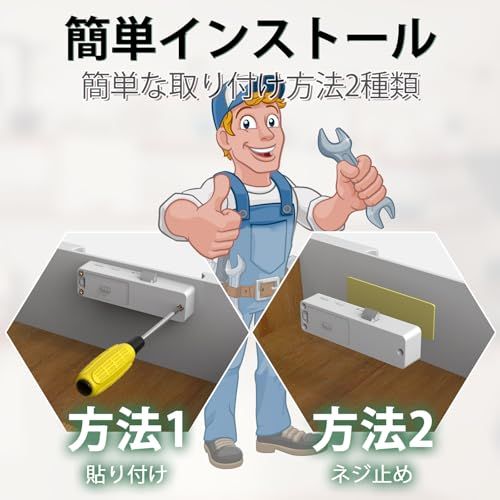 【2種類の隠し設置方法】隠しキャビネットロックは、ドリル不要で家具を傷つけず、キャビネット内部に設置可能。サイズ心配不要。隠しキャビネットロックは接着剤と螺子の2種類の設置方法に対応。3M高粘着テープは強力で安全。