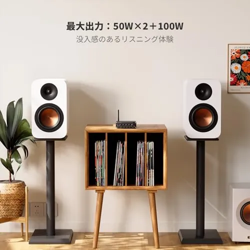 【アップグレードされたBluetooth5.0アンプ】2.1CHBluetooth5.0を搭載し、市販のBluetooth4.2と比較して、音楽再生中の伝送効率を高め、伝送距離を長くします。暖かくて柔らかいサウンド出力を提供し、音場と音質を格段に向上させます。ホームオーディオステレオシステム用の優れたミニオーディオコンポーネントアンプです。