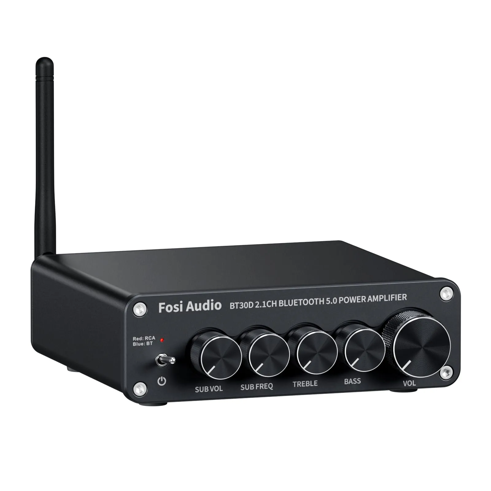 Fosi Audio BT30D Bluetooth5.0アンプ パワーアンプ サウンドアンプ SUB音量/周波数調整 高性能TPA3116D2チップ ステレオ オーディオアンプ 2.1チャンネル 小型 Hi-Fi クラスD 50W*2100W 家庭/屋外パッシブスピーカ/サブウーファに対応 電源付きt