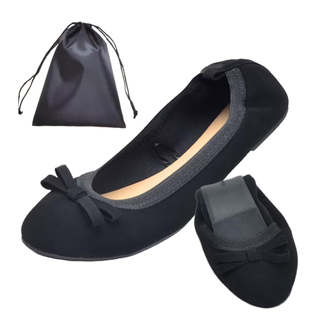 [Yucahype] 携帯スリッパ レディース 携帯シューズ バレエシューズ 婦人靴 折りたたみ 収納袋付き ポータブル ぺたんこ 歩きやすい フラット スリッポン パンプス ルーム 学校行事 参観日 旅行 軽量 上履き