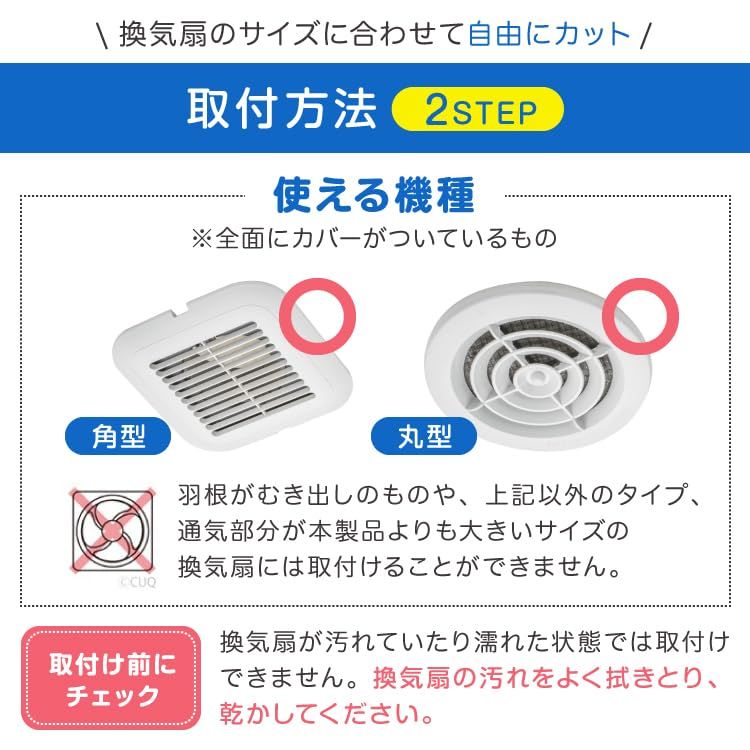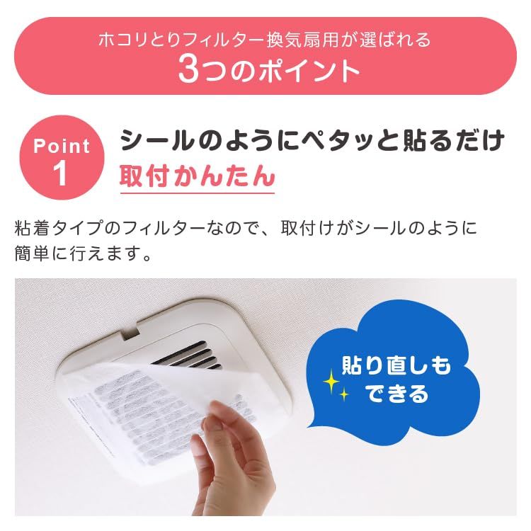 簡単装着:パッと貼るだけで取り付け完了。優れたホコリ取り性能:高品質フィルターが繊細なホコリや汚れをしっかりキャッチし、換気扇を清潔にご覧いただけます。コンパクトサイズ:直径15cmのフィルターです。交換が簡単: