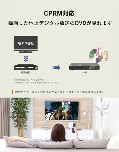 対応ディスク:DVD?Video DVD-R/DVD-RW(VRモード/CPRM再生対応) DVDR/DVDRW 音楽CD(CD規格準拠のものに限る) CD-R/ CD-RW (音楽用CDフォーマットデータ、MP3ファイル形式、JPEG画像ファイル)
