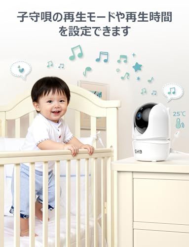 【声かけ・子守唄・タイマー機能付きで子育てラクラク】カメラとモニターに搭載されたマイク&スピーカーで、離れた場所からでも赤ちゃんに優しく声かけが可能。さらに、子守唄機能や、授乳・睡眠管理に便利なタイマー機能も搭載。一台で何役もこなします。