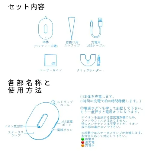 【高い除菌力】PM2.5、たばこの煙、花粉、ウイルス、細菌、生活臭、食べ物のにおい等の空気に含まれる極小の粒子を高濃度マイナスイオンで除去し空気をきれいにします。 携帯用空気清浄機とは言え、93.38%の除菌率で服についた匂いやホコリ、子供や高齢者、妊婦の方々に最適。外出時やオフィス、レストラン、電車、車内等の様々な場所で首掛けで携帯出来て活躍!
