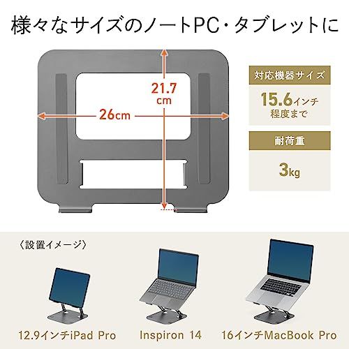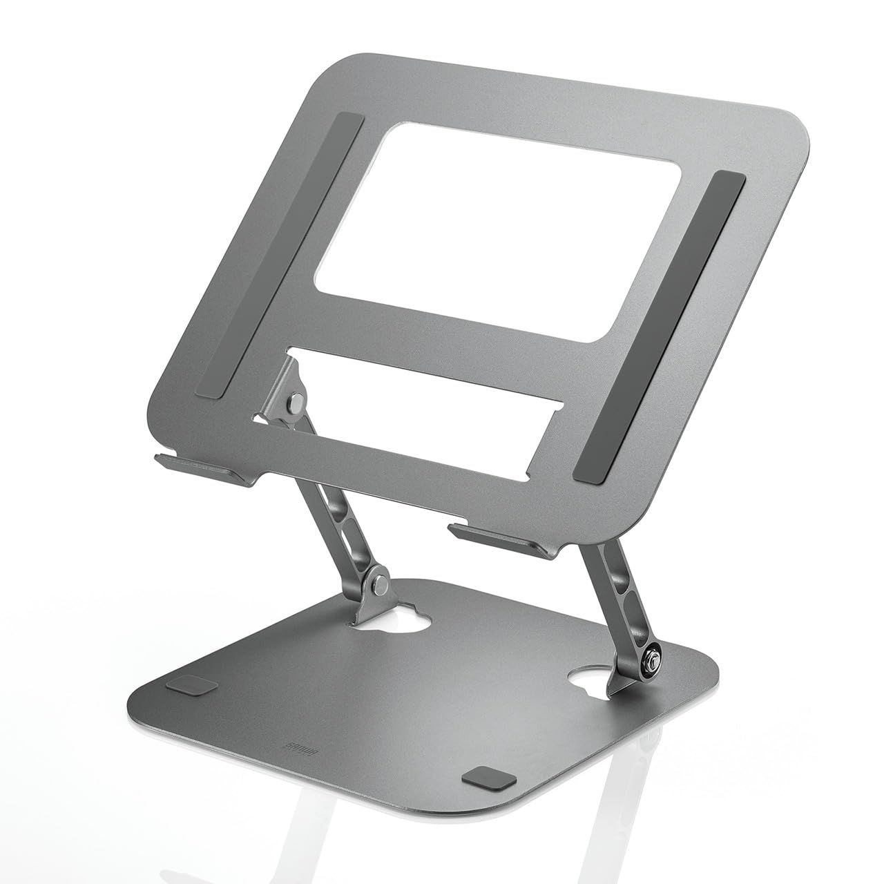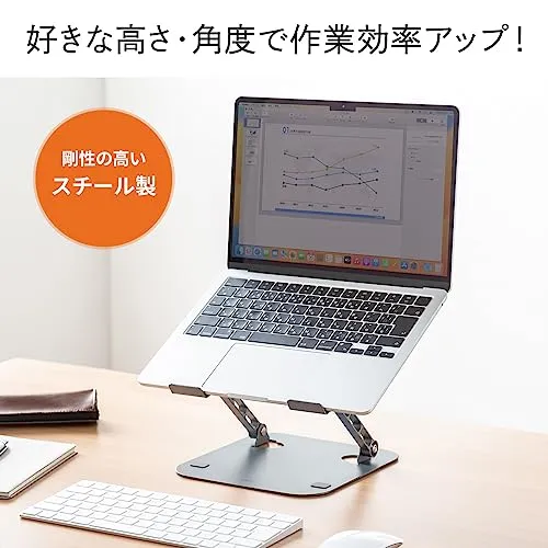 角度と高さの調整ができる パソコンスタンド です。スチール製のため PCスタンド 本体にマグネット製品を取り付けて使用することができます。