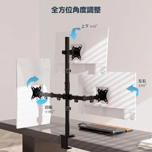 【高さ80CMのロングポール】モニター縦置きスタッキングに最適: センターロッドを長くすることで、人間工学に適した清潔で垂直な設置が得られます。トリプルモニターアームを積み重ねることで、最大の画面空間を得ることができ、姿勢を改善することができます。ビデオ編集、コーディング、マルチタスクなど、プロ並みの作業が可能です。