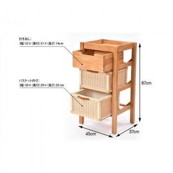 サイズ外寸:(幅)45×(奥行)37×(高)87cm、天板オープン収納部サイズ:(幅)36×(奥行)31×(高)4cm、引出内寸:(幅)33×(奥行)31×(高)14cm、バスケット内寸:(幅)30×(奥行)29×(高)20cm