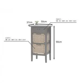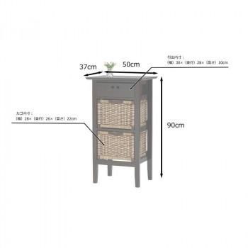 サイズ外寸:(幅)50×(奥行)37×(高)90cm、引出内寸:(幅)30×(奥行)28×(高)10cm(約)、バスケット内寸:(幅)28×(奥行)26×(高)22cm(約)